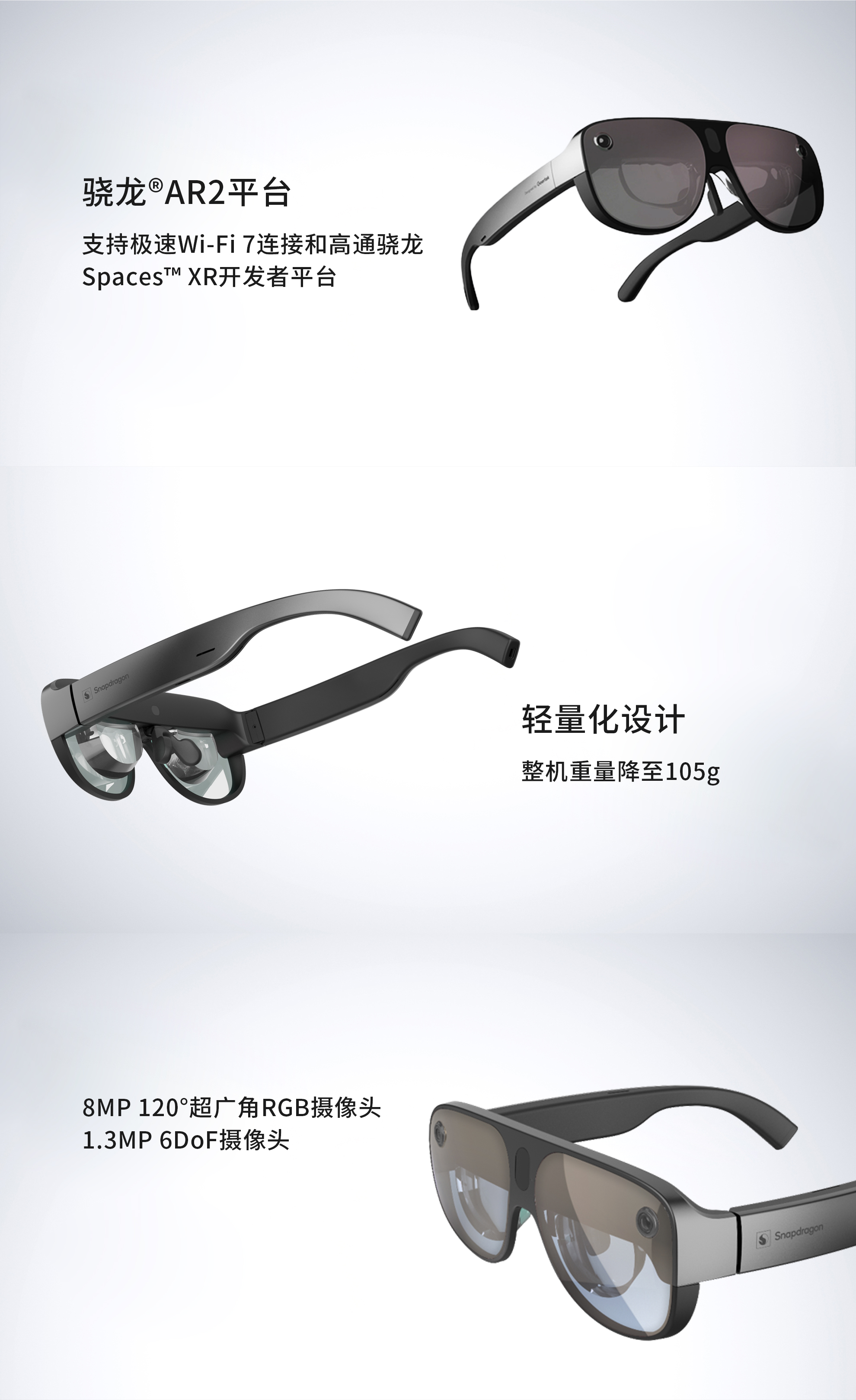 基于驍龍?AR2平臺的輕量級AR智能眼鏡參考設計,是尊時凱龍與高通自2015年合作以來開發的第三代AR眼鏡參考設計,支持驍龍Spaces? XR開發者平臺,致力于滿足企業和消費者不同產品需求,幫助終端品牌廠商快速開發量產性能卓越的輕量級AR智能眼鏡產品。